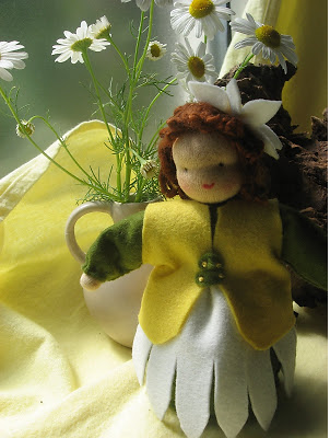 Wat een lief margrietje heb je gemnakat, leuk dat je haar wat groter hebt gemakt. Mooie foto zo met de echte margrietjes!